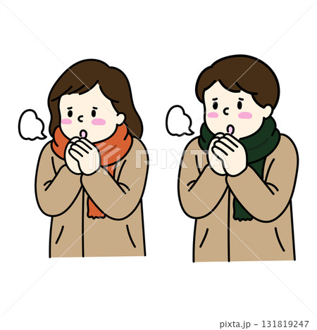 寒い中手を温める男女のイラスト