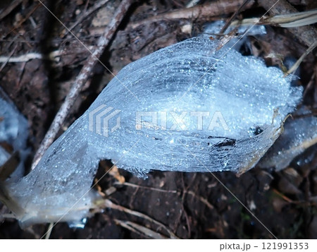 太陽のひかりで銀色にキラキラした雪解けの感じ 幻想的 ダイヤモンド クリスタル