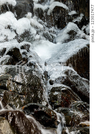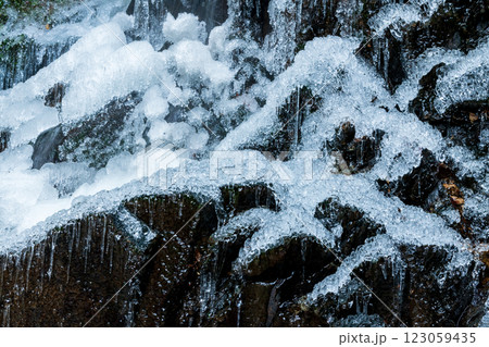 氷でコーティングされた氷瀑の岩