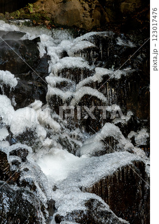 凍り始めた滝の風景