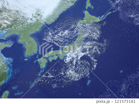 日本列島 寒冷前線 架空の天気図(3DCGイメージ)