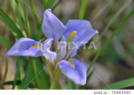冬に咲く小型のアヤメ薄紫色の寒菖蒲の花