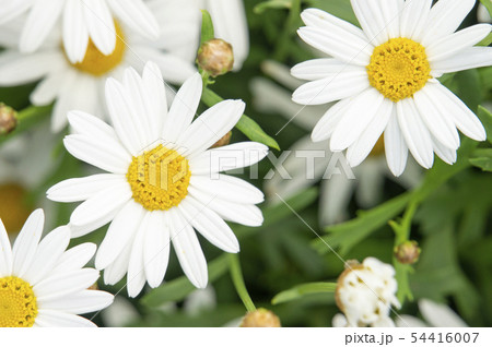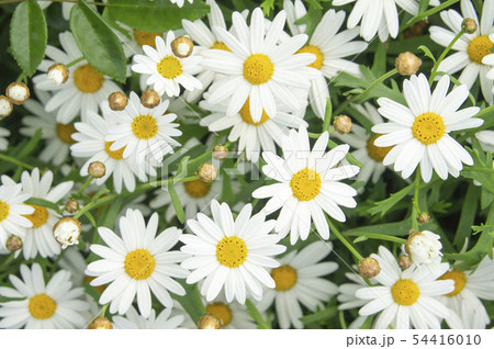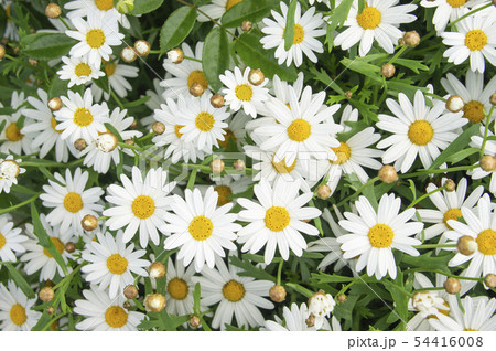 可愛い白い色のノースポールギクの群生【カンシロギク】
