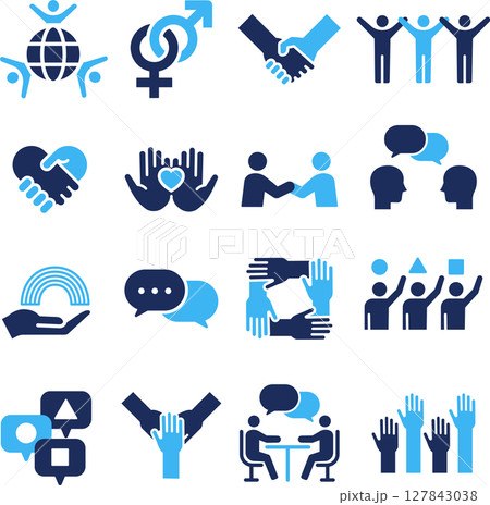 青2色のダイバーシティに関するシルエットアイコンセット