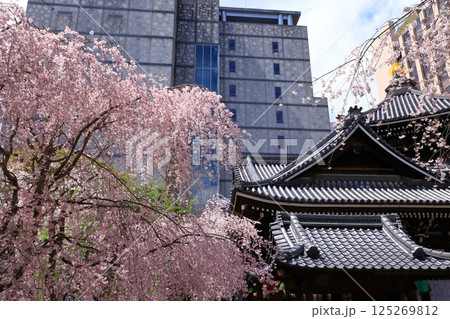 京都 紫雲山頂法寺 六角堂 美しい満開の枝垂れ桜(京都市中京区)