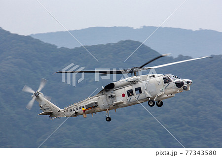飛行する海上自衛隊のSH-60K対潜哨戒ヘリコプター