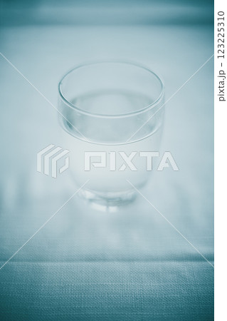 透明なグラスに満たされた水(静寂・ミニマルフォト)