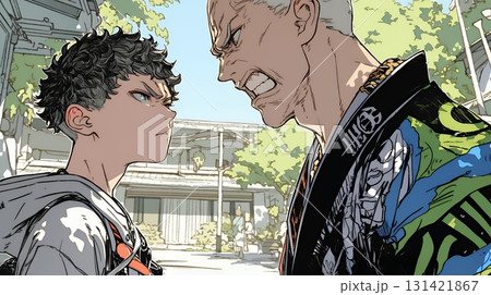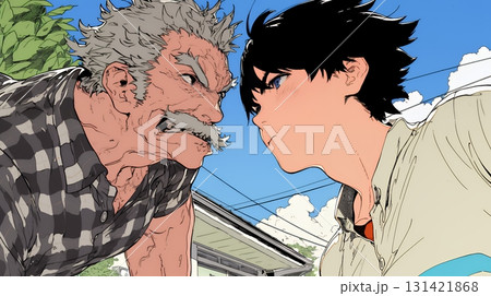 親子喧嘩:青年男子の息子と父親がいがみ合っている