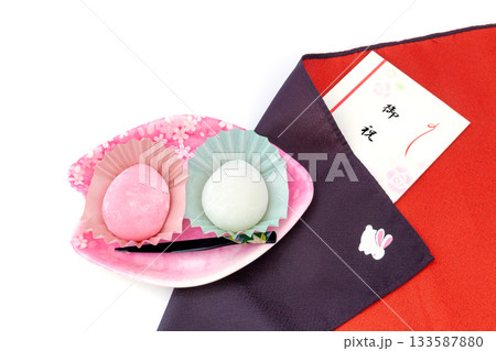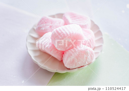 おいしいピンクの和菓子、すあま【白背景・切り抜き】