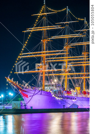 富山県射水市 富山新港 みなとオアシス海王丸パークに係留される帆船海王丸