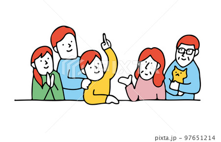 頭上のテーマについて話す2世帯の家族