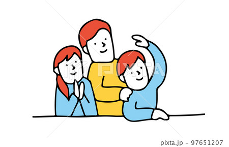 将来を見る三人家族のイラスト