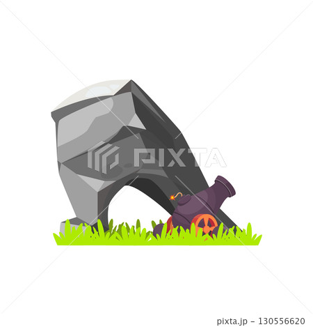 A cartoon-style artillery cannon with lit fuse, poised to fire a projectile towards a target.