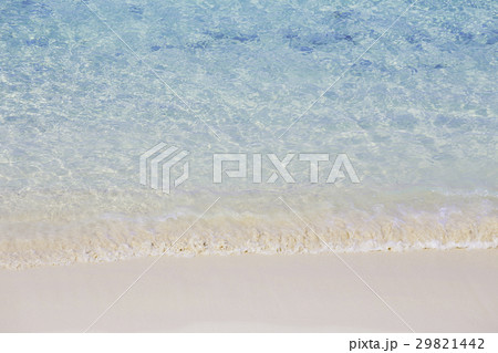 夏の碧い海と透明な渚と白い砂浜ビーチの風景