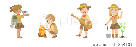 Happy Kid Scout Character in Khaki Uniform Vector Set