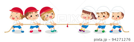 綱引きをする可愛い小さな子供たちのイラスト 白背景 全身 人物 クリップアート ベクター