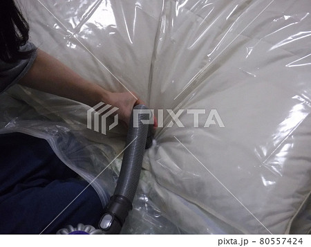 圧縮袋に布団をいれて掃除機で吸う ~Put the futon in the compression
