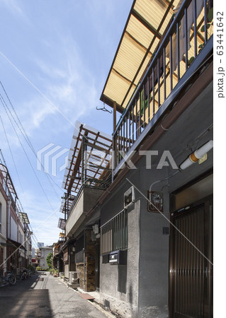中崎町路地-4-車の入れない初夏の都会の路地風景