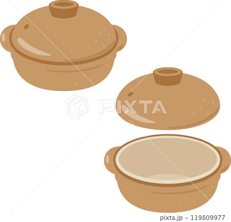 小型の土鍋の蓋をしたイラストと蓋を取ったイラスト