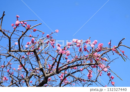 青空に映える八重紅梅 【相模原市津久井 2月】