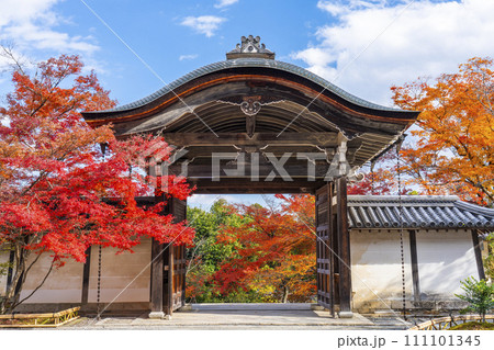 秋の京都 二尊院 色鮮やかな紅葉と勅使門