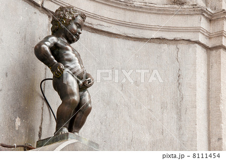 The Manneken Pis a famous bronze fountain statue located in Brussels