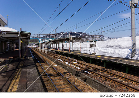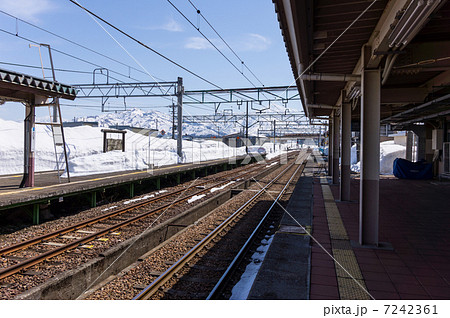 小出駅の線路と雪景色 新潟県魚沼市