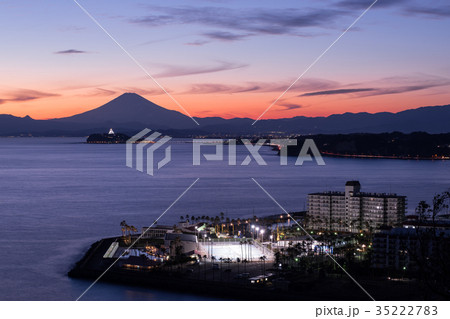 鎌倉 稲村ヶ崎から望む 富士山の夕景