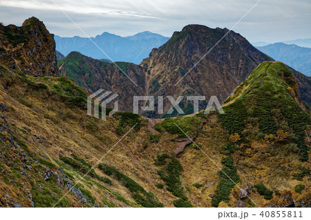八ヶ岳連峰・横岳の登りから見る大同心・小同心の岩峰と阿弥陀岳・南アルプス