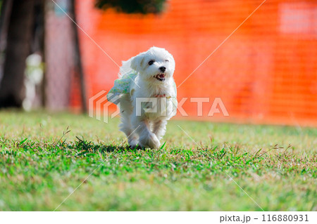 ドックランで楽しそうに遊ぶ子犬 ポメックス