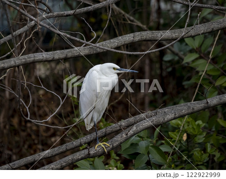 稲毛海浜公園への浜の池に来た白い鳥はコサギ