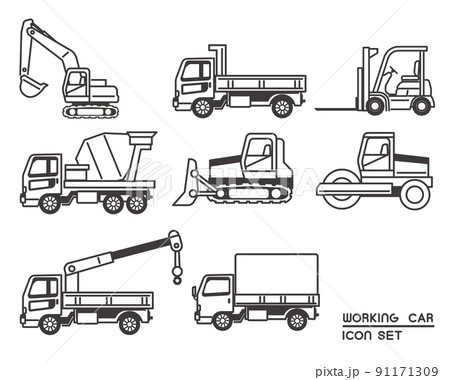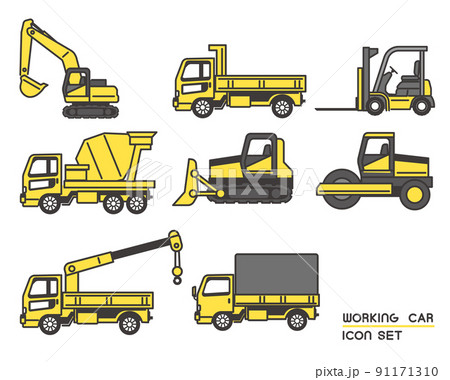 ショベルカーやブルドーザーなどの働く車のアイコンのベクターイラスト素材/重機/建設/働く車