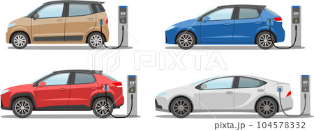 電気自動車 EV 充電中 イラスト コンパクトカー SUV セダン 軽自動車