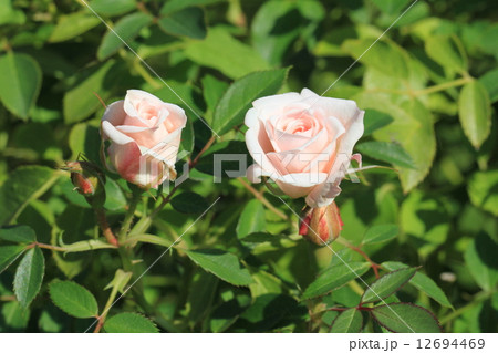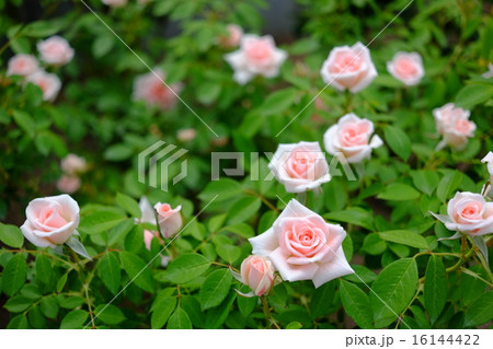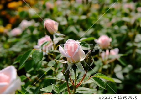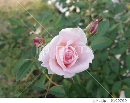 咲き始めの淡い桃色のミニバラの花・小夜曲