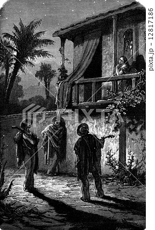 Serenade, vintage engraving.