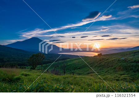 【山梨県】山中湖・三国峠から、梅雨の晴れ間の富士山 夕景