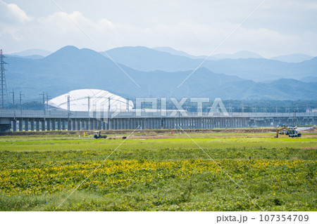 田園地帯を走る北陸新幹線イメージ|小松駅と加賀温泉駅の間|石川県小松市