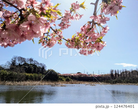 小松ヶ池 Komatsugaike pond 河津桜 Kawaduzakura cherry