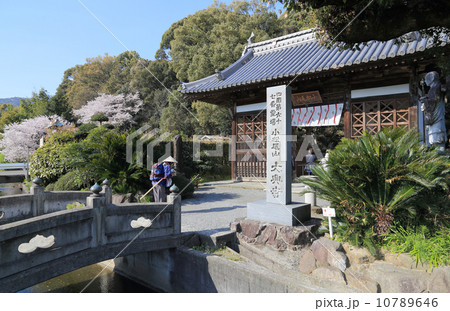 四国霊場第67番札所「大興寺」仁王門前のお遍路さんと桜
