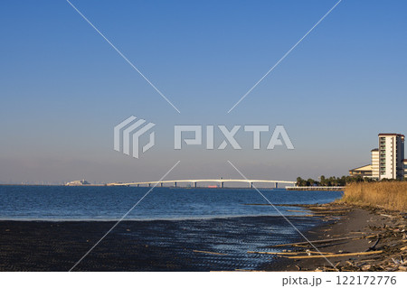 快晴の冬の日 盤洲干潟から見える東京湾の風景