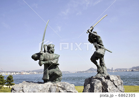 下関 巌流島の戦い 武蔵と小次郎像