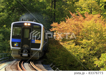 紅葉の中を走るリゾートビューふるさとHB-E300系/小海線(八ヶ岳高原ライン)