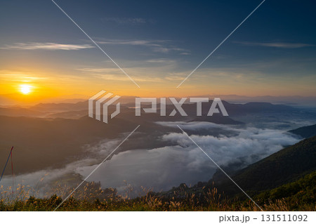 初日の出イメージ 山間部の雲海と日の出 【長野県】