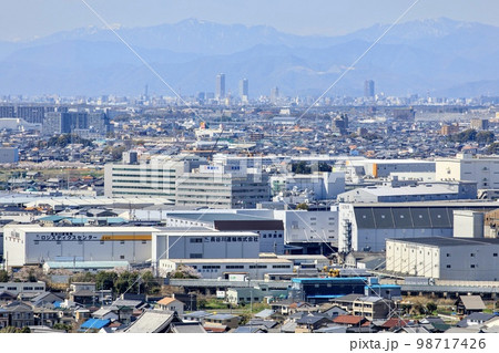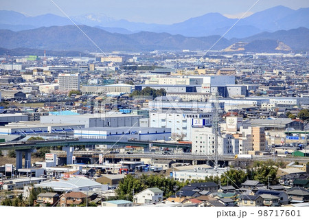 小牧市 小牧山城から眺める物流倉庫街(小牧インターチェンジ方面)