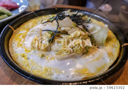 一人前サイズの小さな土鍋に入れられたキムチ鍋。