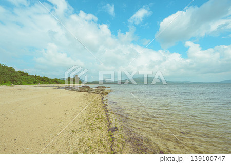 浅瀬の透明感と青空が美しい石垣島の静かな夏の海景色