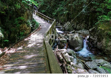 小秀山乙女渓谷の木道と沢