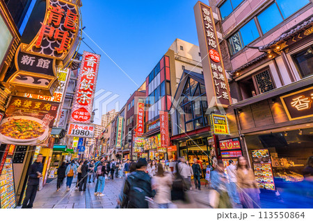 日本の横浜都市景観 3月・観光客らで賑わう横浜中華街。コロナ禍前と変わらない…希望の時代へ=15日