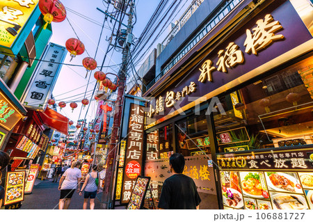 日本の横浜都市景観 4月・観光客らで賑わう横浜中華街。コロナ禍前と変わらない…希望の時代へ=14日