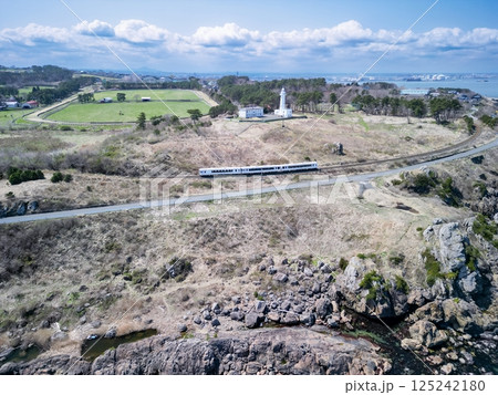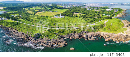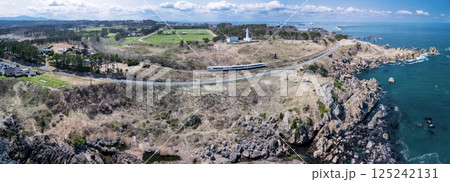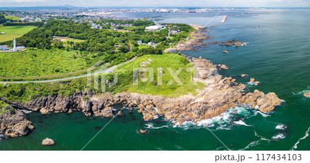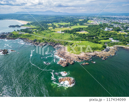 「青森県」初夏の美しい種差海岸沿いを空撮